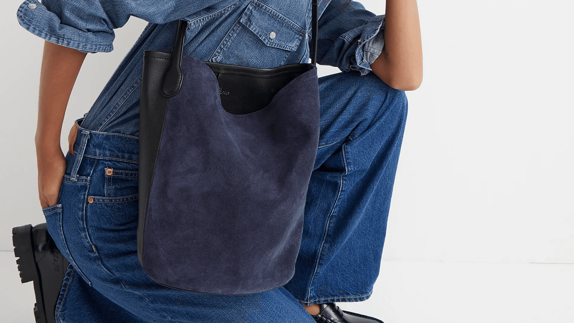 If you love the shape of a classic canvas tote bag, but want something that feels fancier, go for a bucket bag. It has a simple tie closure and is even large enough to fit a laptop (shocking, we know). ($198, J.Crew)