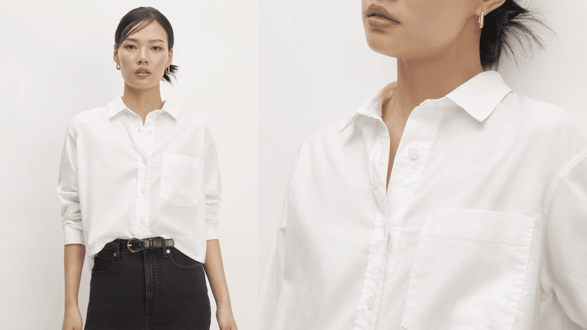 Everlane is one of the most dependable retailers for workwear due to its high quality and minimal designs. This cotton shirt is slightly boxy and is the perfect cropped length hitting right at the waist. Wear it on its own for a dressier setting or open with a top underneath for more casual ones. ($88, Everlane)