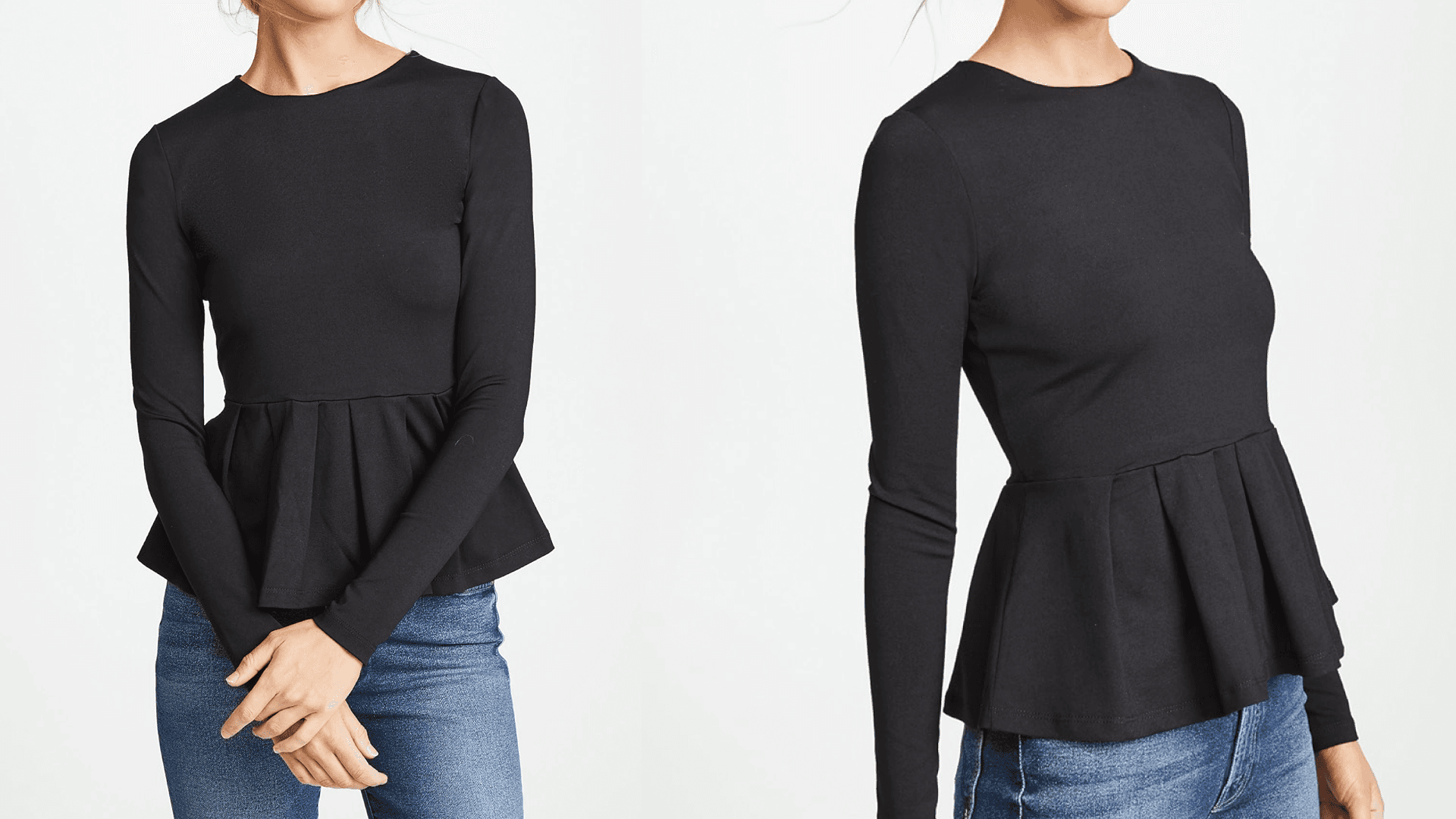 Peplums are slowly but surely coming back and we’re not totally skeptical. If you’re looking for a new black top or want to change up your T-shirt rotation, add this one to your cart. Because it has the added peplum, it’ll work for most dress codes and feel like a step up from more casual blouses. ($118, Shopbop)