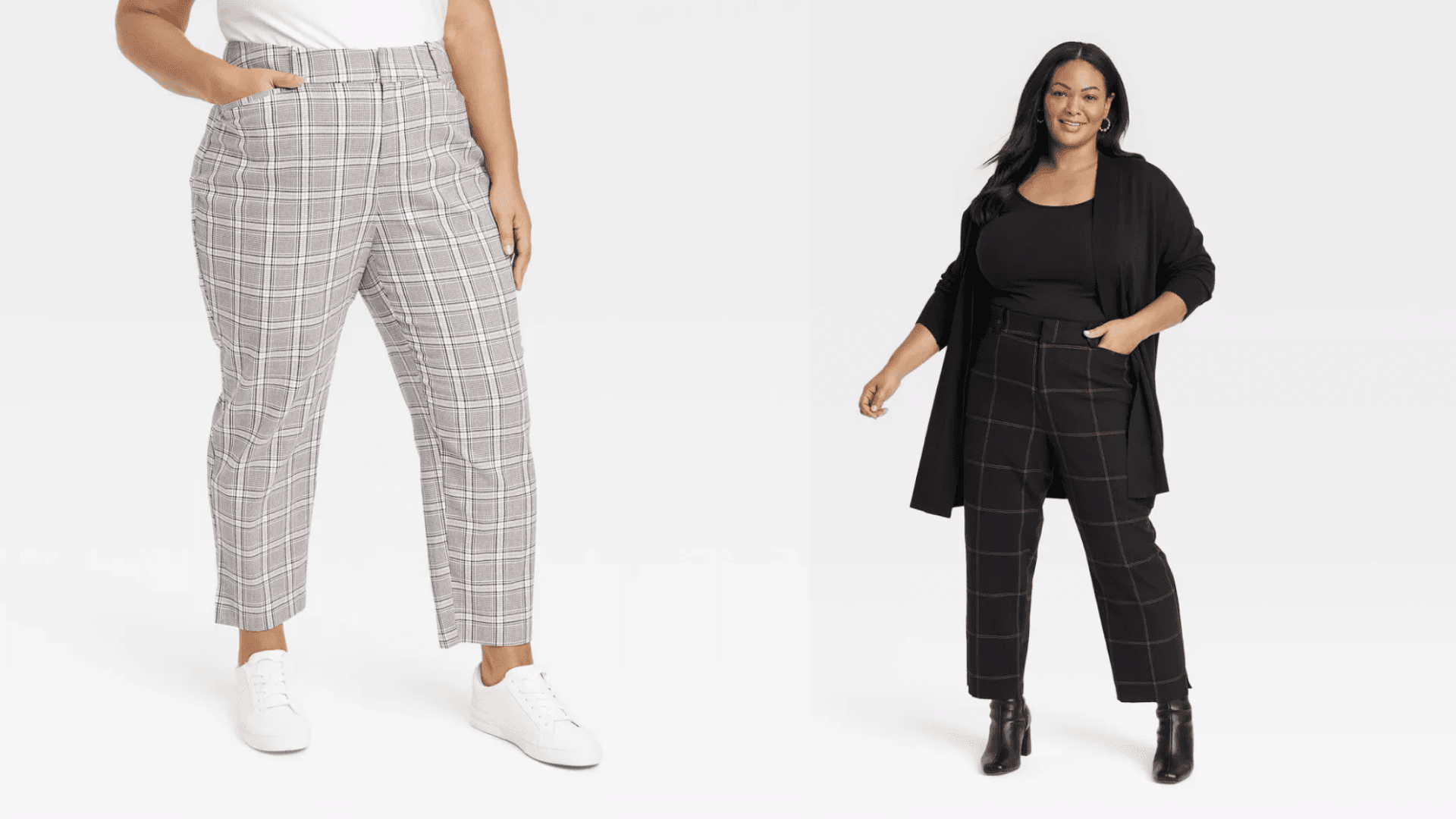 These ankle-length pants are right between a skinny and a straight leg. Pick from black, black plaid, cream plaid, and a burnt orange. They’ll hit at the perfect spot so you can show off your favorite pair of ankle boots. Plus, they have a full elastic waistband for extra comfort. ($30, Target)