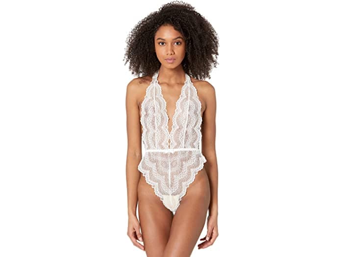 Snag this beautiful bodysuit for less than $100. It’s made of sheer lace and features a halter-tie neck that looks trendy with a high-waisted pair of jeans or shorts (or on it’s own in the bedroom…).
