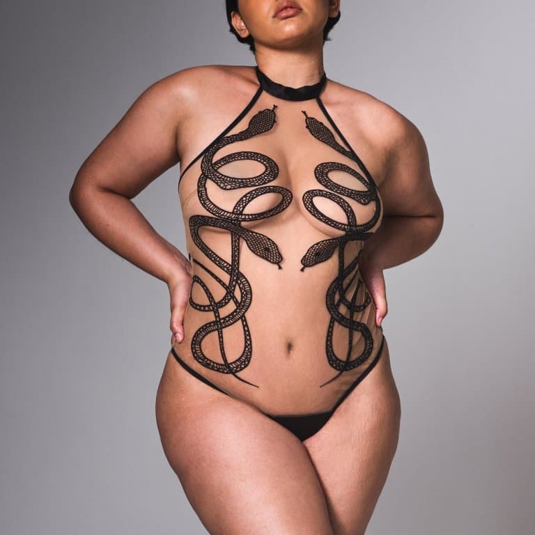 Feel as badass as the Greek legend in this snake-y bodysuit. It features elegant embroidery, sheer mesh, and nude tulle for a look that’ll certainly turn heads. It’s also now available in sizes up to 3XL and a range of diverse shades.