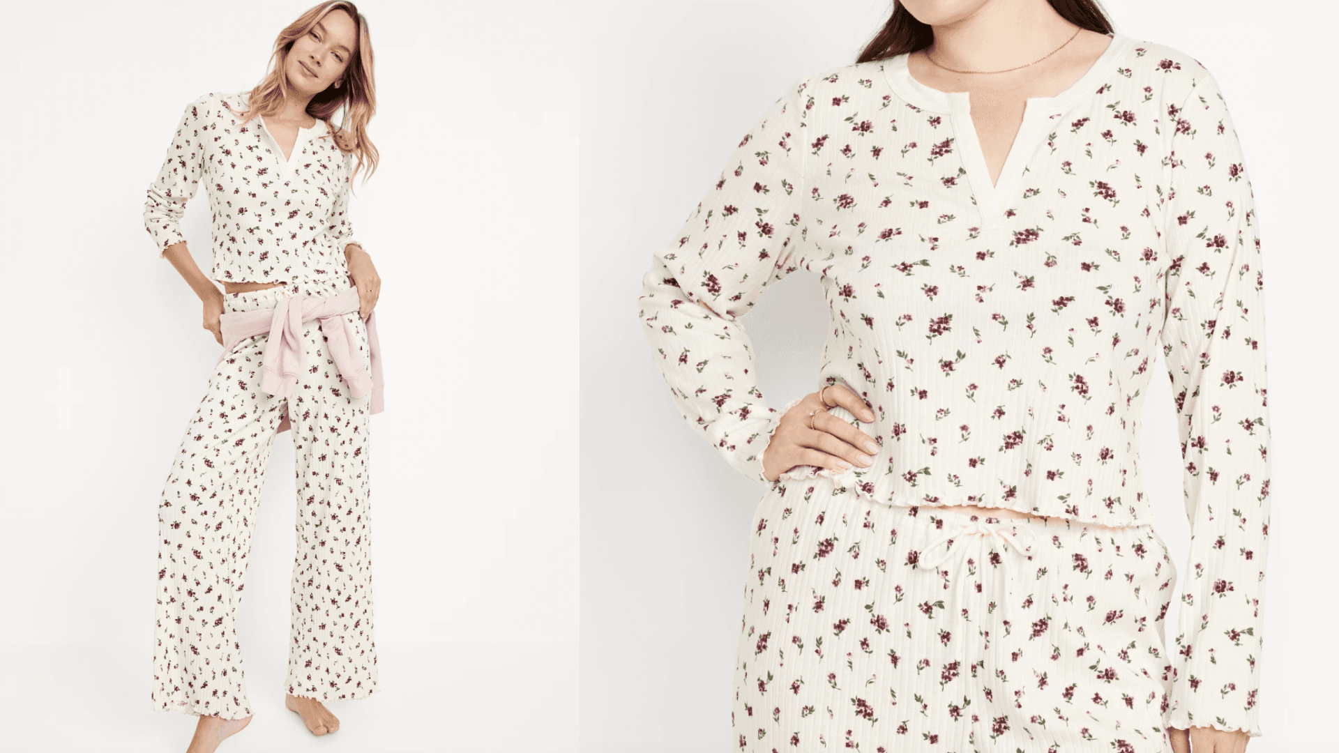 With the holidays just around the corner, I have a feeling that the red and green floral-printed version of these are going to be all the rage. This set is perfect if you’re looking for an on-trend pair that doesn’t have that classic collared-pajama silhouette. Plus, the price is unbeatable.