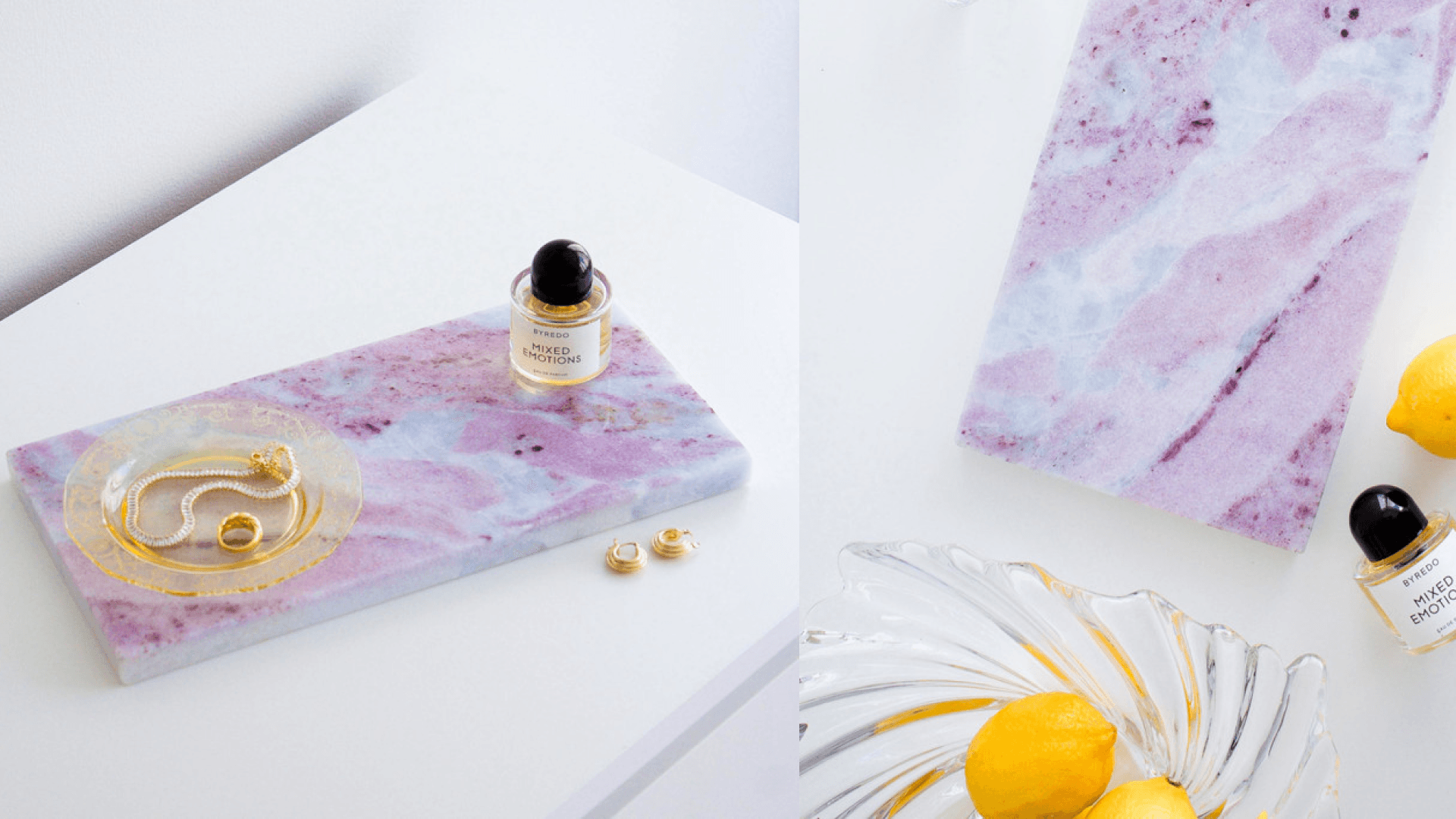 This piece is out of this world. It’s handmade with a stunning purple marble that has delicate blue and white stripes. Gift it for your pal’s entryway, bedside table, coffee table, or desk. Or they can use it to display skincare, perfumes, and more. ($165, Minted)