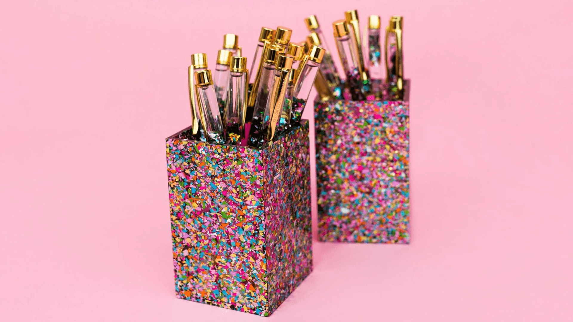 Want to make their WFH life more fun? Add some confetti. This pen cup is made by adding confetti to acrylic, which is then cut and assembled by hand. And because of this, each one is a little bit different. Their emotional support pens now have the brightest new home. ($20.95, TaylorElliotDesigns via Etsy)