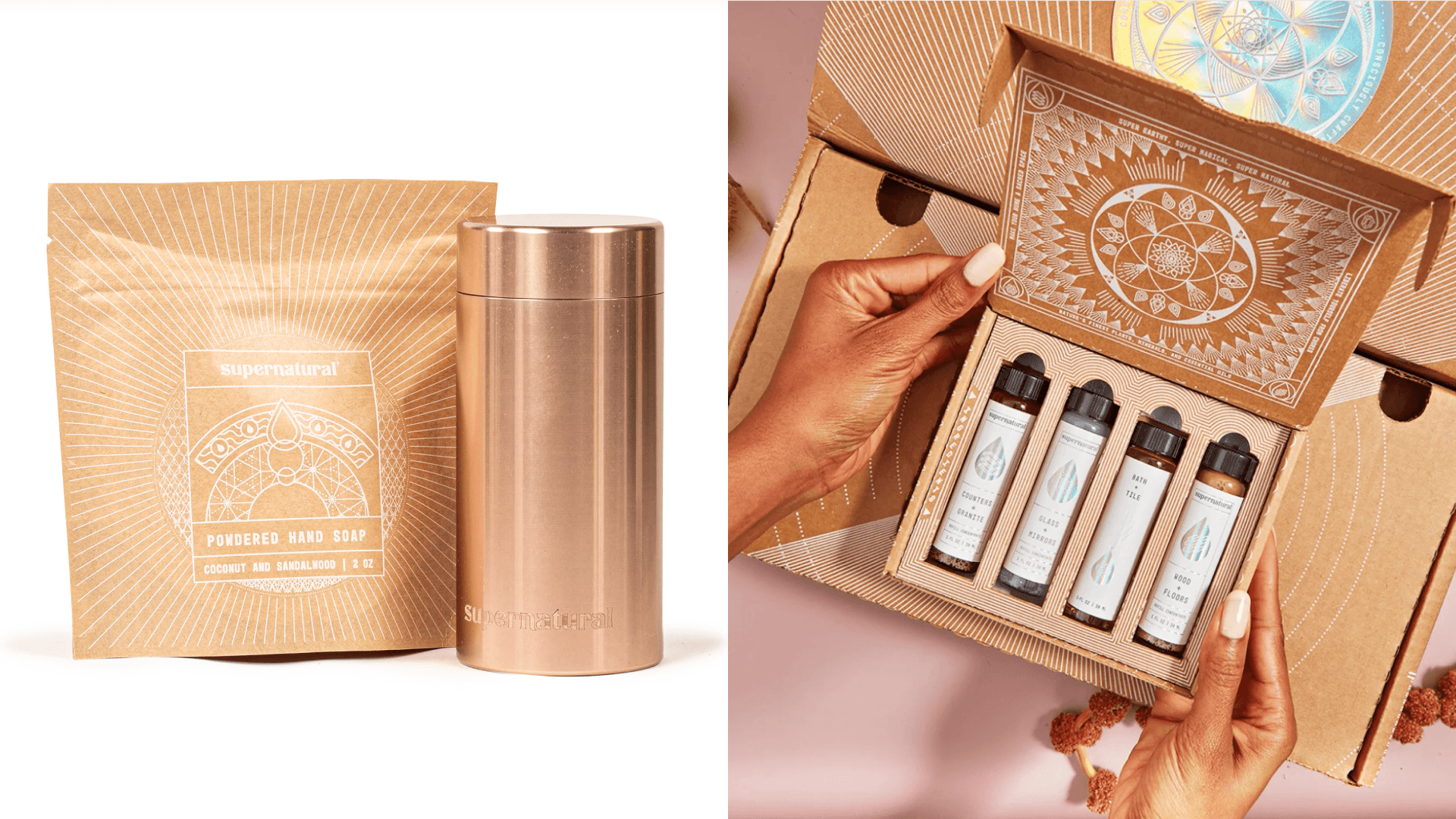 Supernatural uses plant-based ingredients, minerals, and essential oils in its cleaning formulas. Their starter set has wood floors, granite countertops, glass and windows, and bathroom tile covered. Our obsession: their powdered hand soap, which comes with a refillable aluminum shaker. (Price varies, Supernatural)