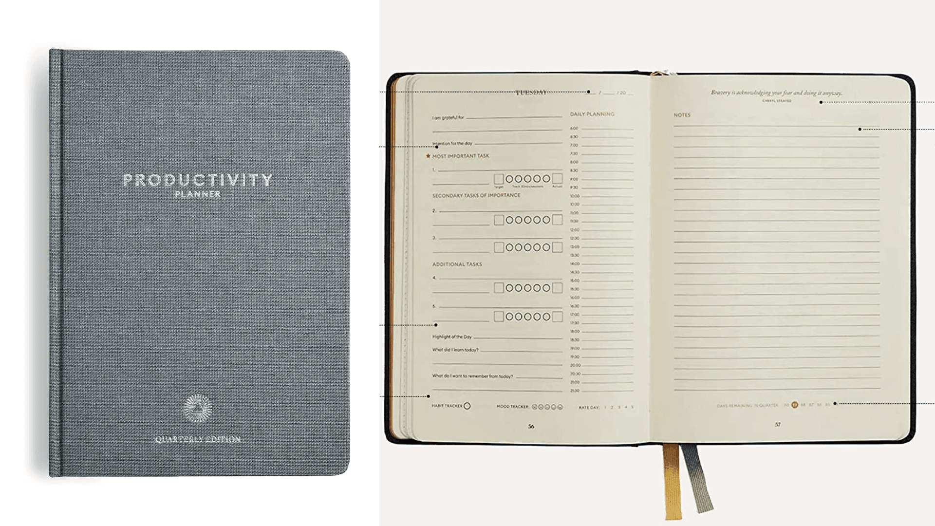 The brand that makes our fave Five Minute Journal also makes a productivity planner so you can mindfully set and accomplish your goals. It's divided into two parts to make things easy. The first lets you rank your daily tasks, express gratitude, reflect through guided prompts, track your habits and moods, and time block your day. The second leaves space for you to write down any extra notes or do a quick journaling sesh. Plus, there are quarterly planning sheets and prompts, so you can list your intentions and what you want to focus on. Add to cart right away. ($41.99, Amazon)