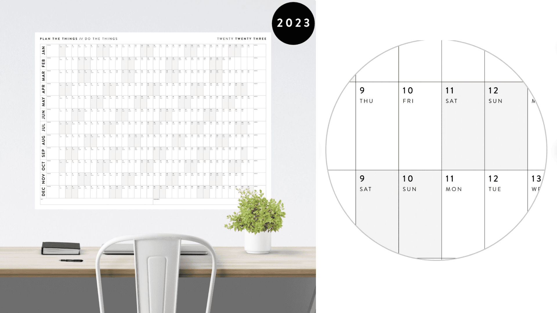 This cal lets you see your plans for the entire year at once. It’s made on a heavyweight matte paper and there are focus-themed boxes so you can get really specific about your monthly goals. Plus, there’s space in the notes section to jot down any extra thoughts. If you wanna feel even more organized, there’s even a key box for color coding. See ya, sticky notes. ($28+, PlanTheThingsCo via Etsy)