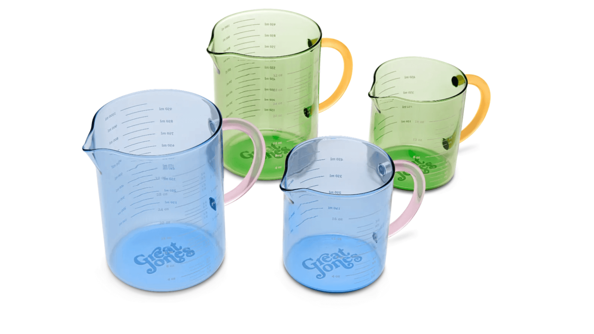 Another simple way to add color to your space: show off those kitchen accessories, from Dutch ovens to kettles. In our eyes, Great Jones can do no wrong. This measuring cup set comes in two colorways: pink/blue or green/yellow. They’re microwave- and dishwasher-safe, come in two sizes, and have a precise spot for mess-free pouring. Get creative and keep them out on your counter. You don’t have to just use them for measuring. We have them and even use them as vases. ($70/set of two, Great Jones)