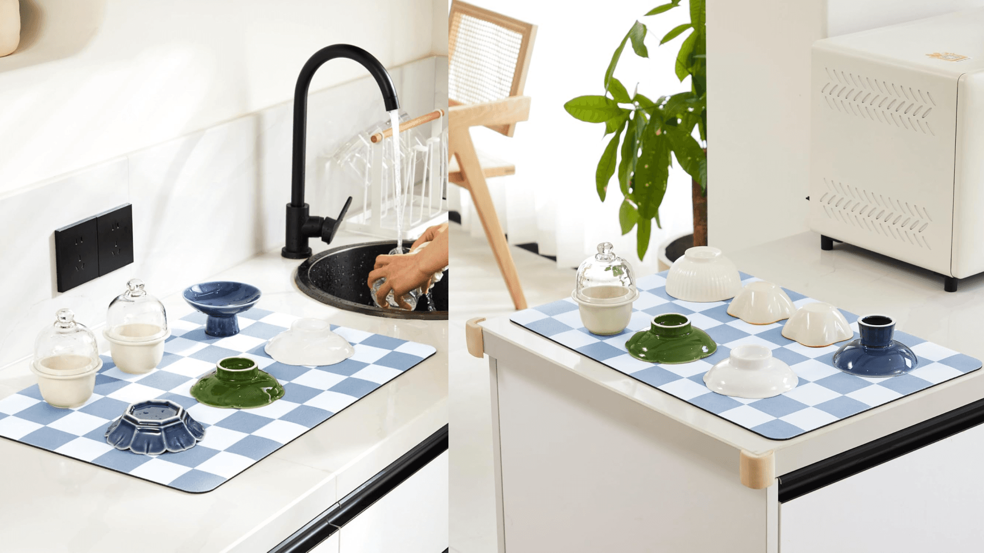 Many of the drying mats that actually work tend to be an eyesore. This checkered one is absorbent, quick-drying, and adds some extra flair to your countertop. Pick from two sizes and eight colors. ($12.99, Amazon)