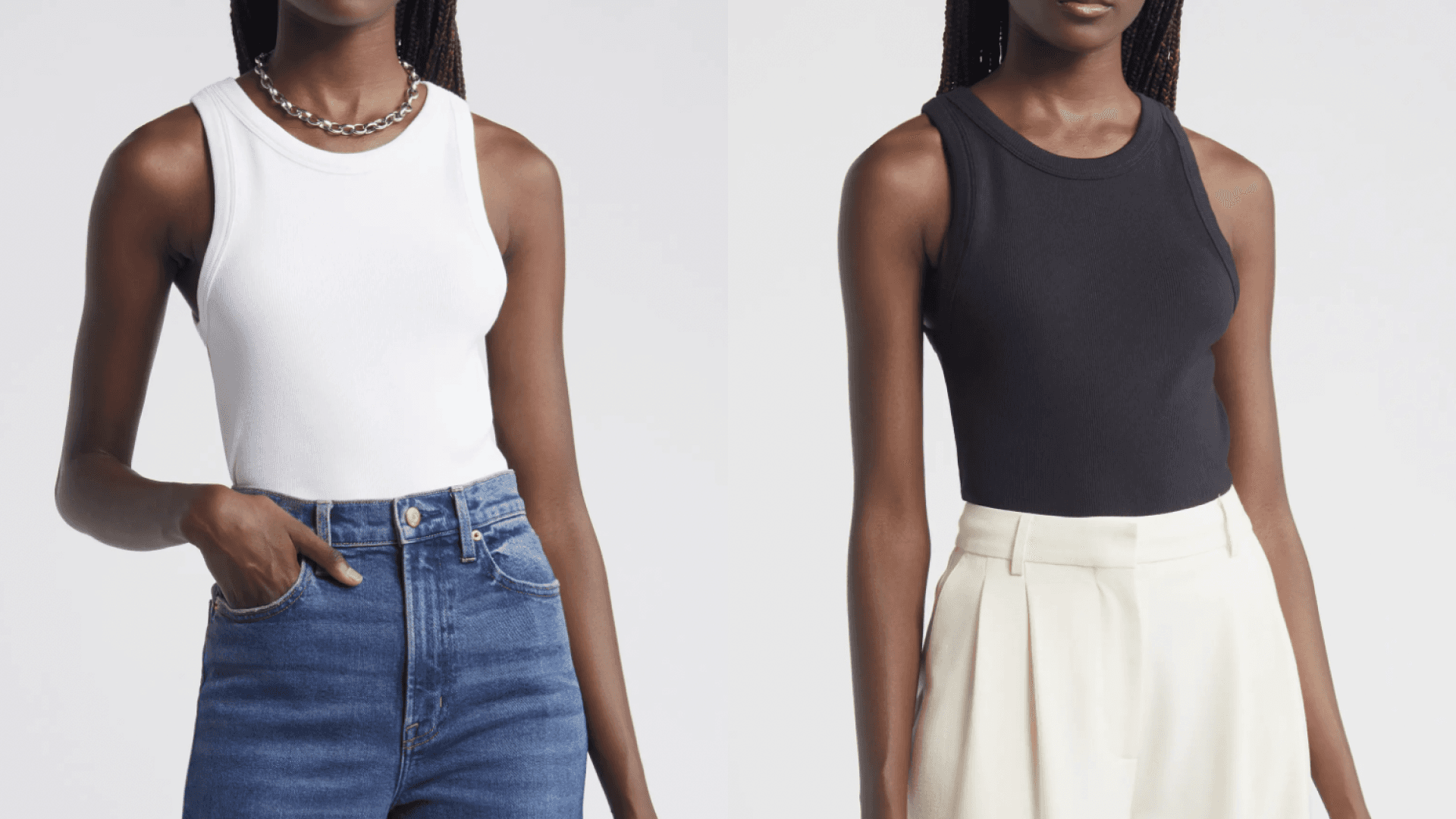All of the pieces I’ve purchased from Nordstrom’s in-house brands have been well-priced and lasted me for years. This ribbed cotton tank top has a high neck, so it’s pretty much asking to be worn with a necklace stack. Pair it with jeans and a blazer for a casual office look. ($35, Nordstrom)