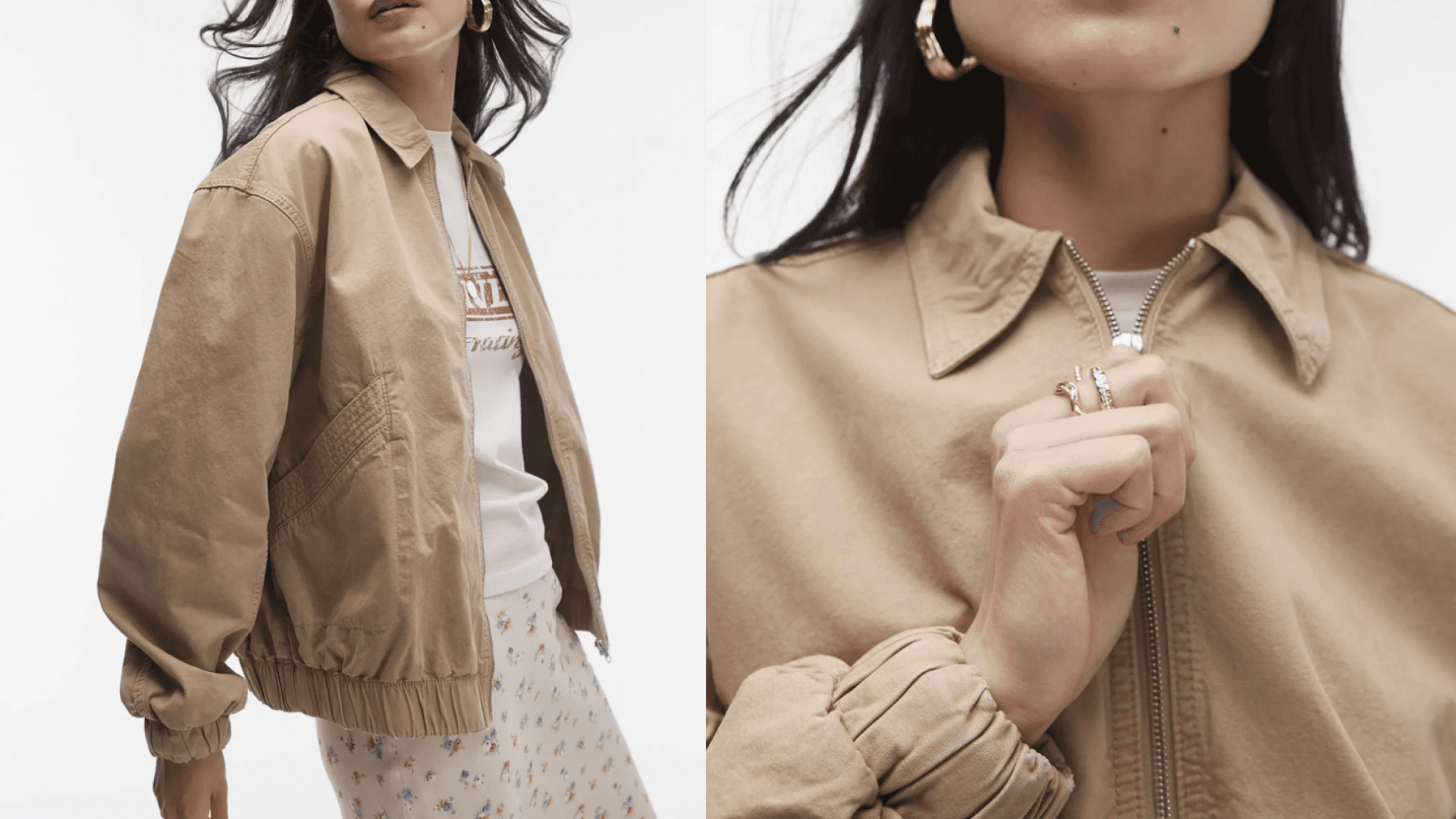 There are some days when I want the lightweight layer of a denim jacket, but don’t want a denim-on-denim look. That’s what I love a barn or bomber jacket for. This khaki bomber jacket from Topshop is slightly oversized. I’d wear it with a colorful silk dress or over a T-shirt. ($55+, Nordstrom)