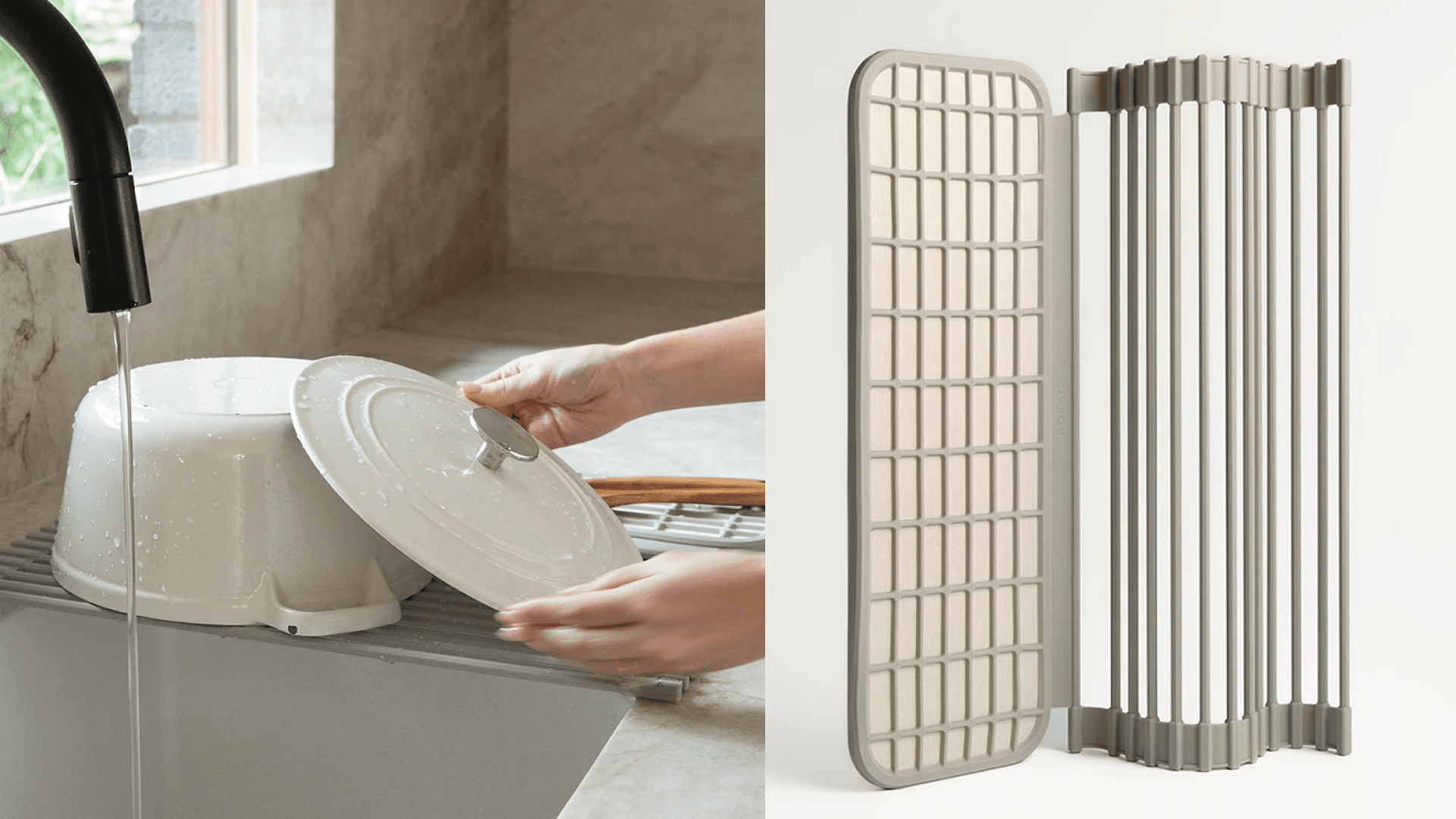 This pad will immediately make dishwashing feel “high-tech.” One end is made of a quick-dry stone that anchors to one end of the sink. The other end is a silicone-wrapped drying rack that’ll provide ventilation and speed up the drying process. It’s ideal for anyone that could use even more counter space. We love it simply because it’s design-forward and actually cuts down on drying time. ($75, Dorai)