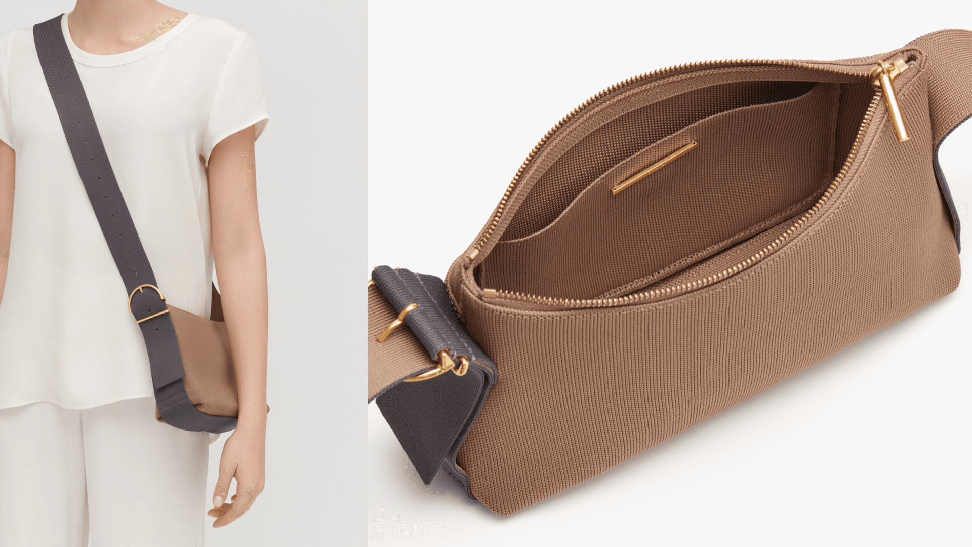 Chic and made from upcycled landfill plastic? Yes, please. This machine-washable, everyday piece has an interior zip pocket and an adjustable strap, which you can use to turn it from a crossbody to a shoulder bag for a two-in-one look. Plus, its zippered top will protect all your essentials. It comes in four neutral colors too. ($148, Cuyana)