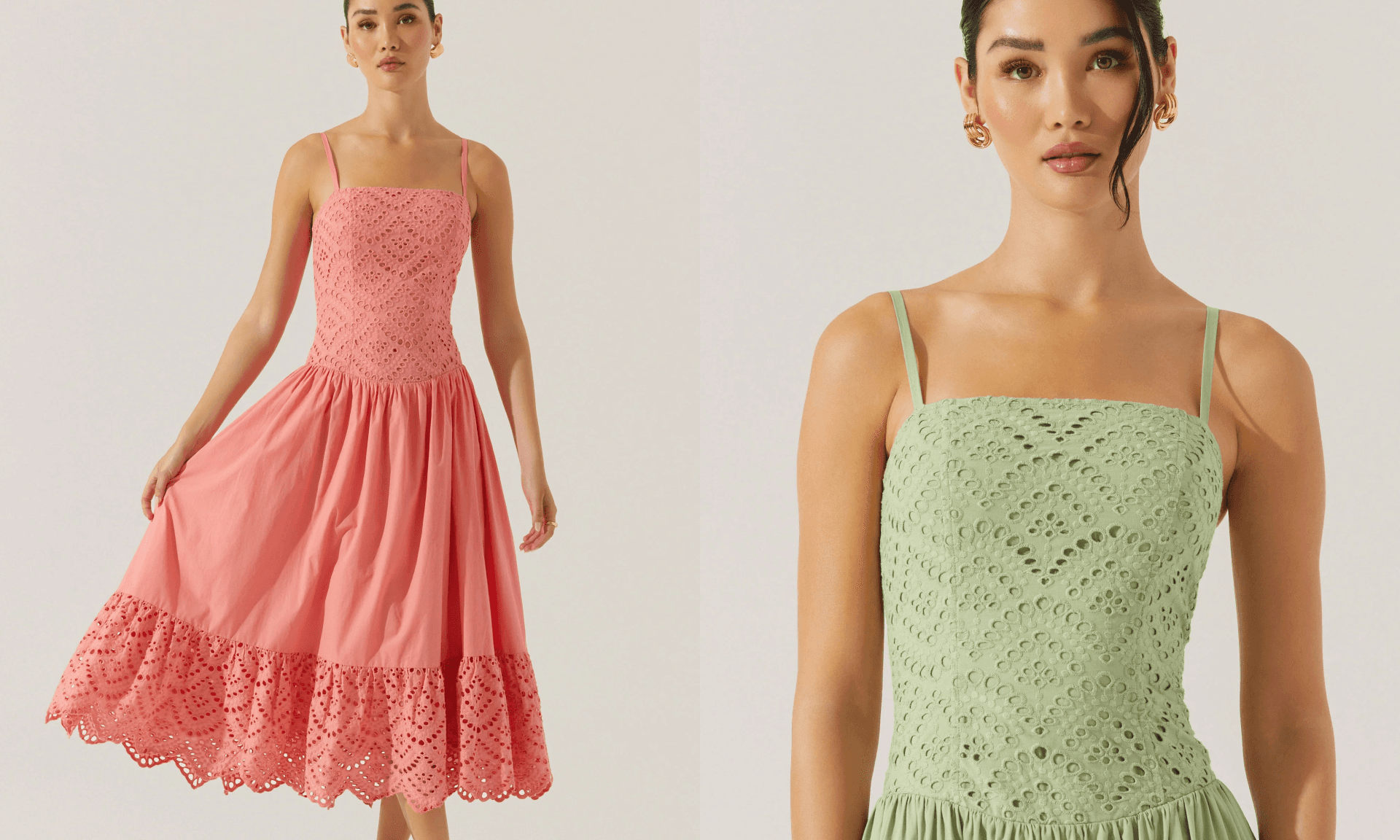 This dress pairs best with sunny days and a freshly squeezed mimosa. We’re loving its trendy drop-waist silhouette and pastel colors (brides, they have a white option, too). The straps are adjustable and the pockets are nice and deep. Cheers to that. ($168, Astr the Label)