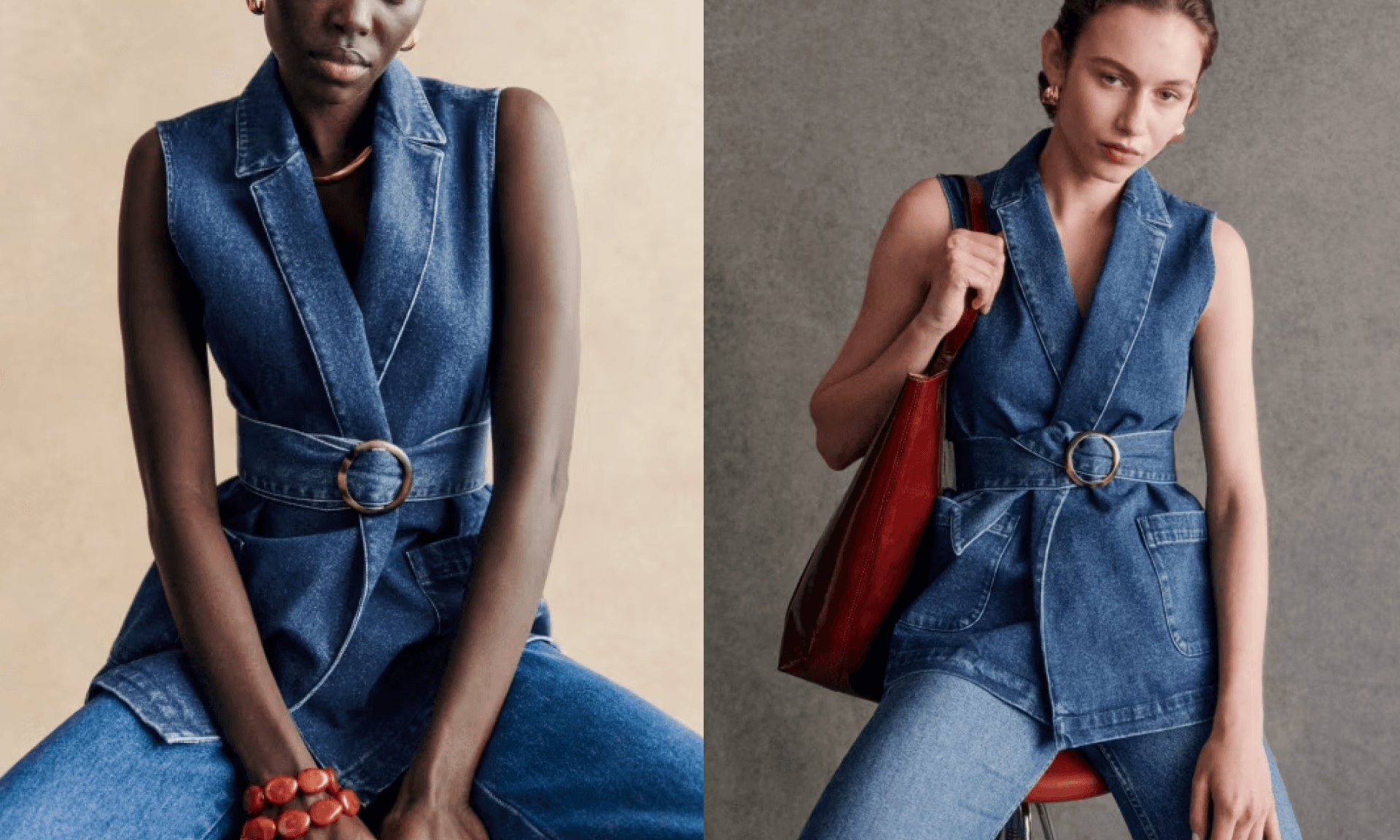 This is a great sleeveless jacket if you’re on the hunt for something a little different, but still comfortable and functional. This vest doesn’t require a shirt underneath it, just your favorite jeans or bottoms to help show it off. The wrap belt is removable, but we love the shape and fit it offers. ($190, Sézane)