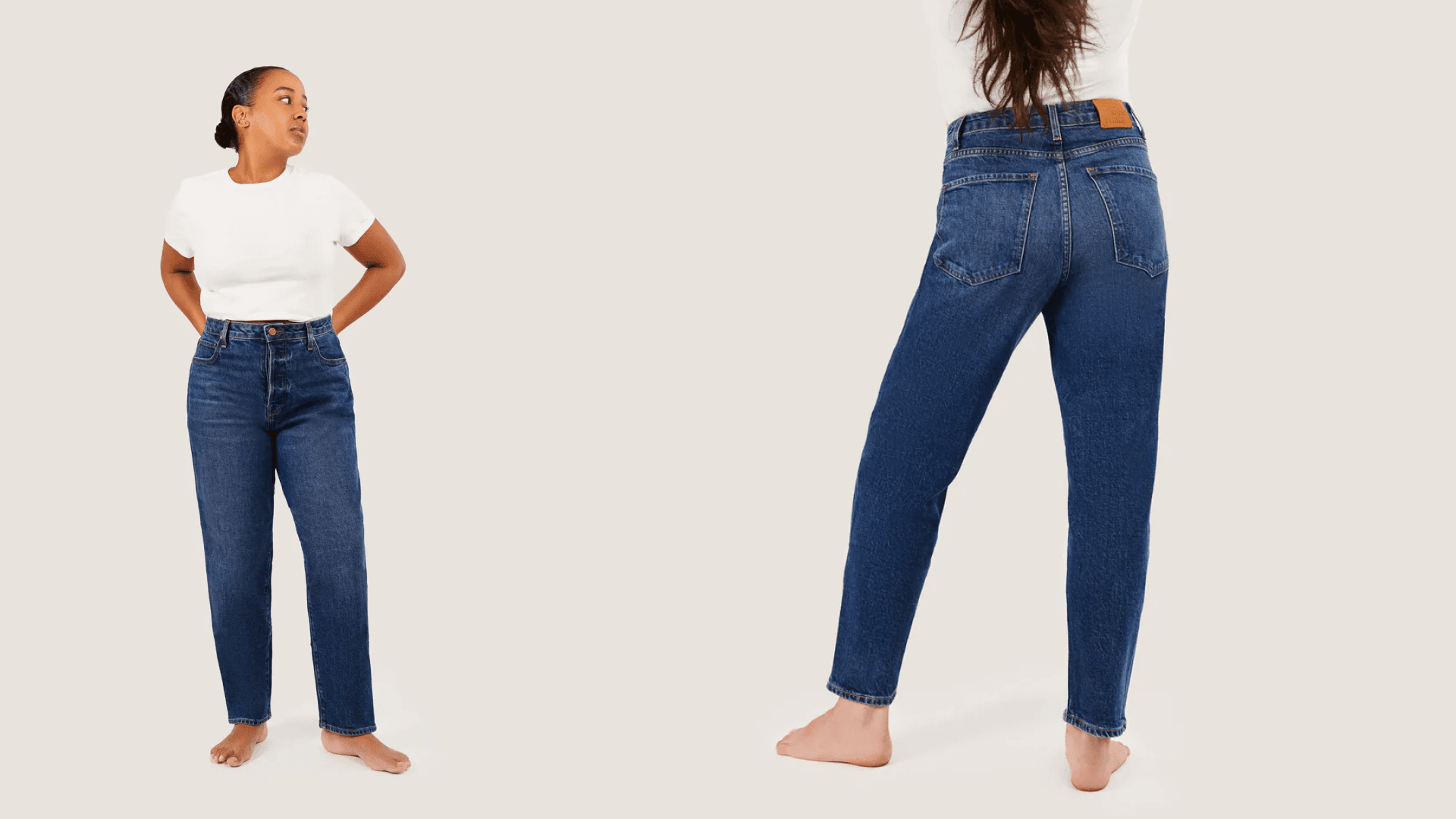 Our bestseller is The Claire in Sky. We just launched that style in a new off-white colorway. The Claire is a 100% rigid jean that can easily carry you from day to night. You can style it with sneakers or flats for your day-to-day, or throw on some heels and head out to dinner. If you prefer something with a hint of stretch, I would recommend our Kate Jean. Its high waist and full-length leg makes your legs look 10 miles long.