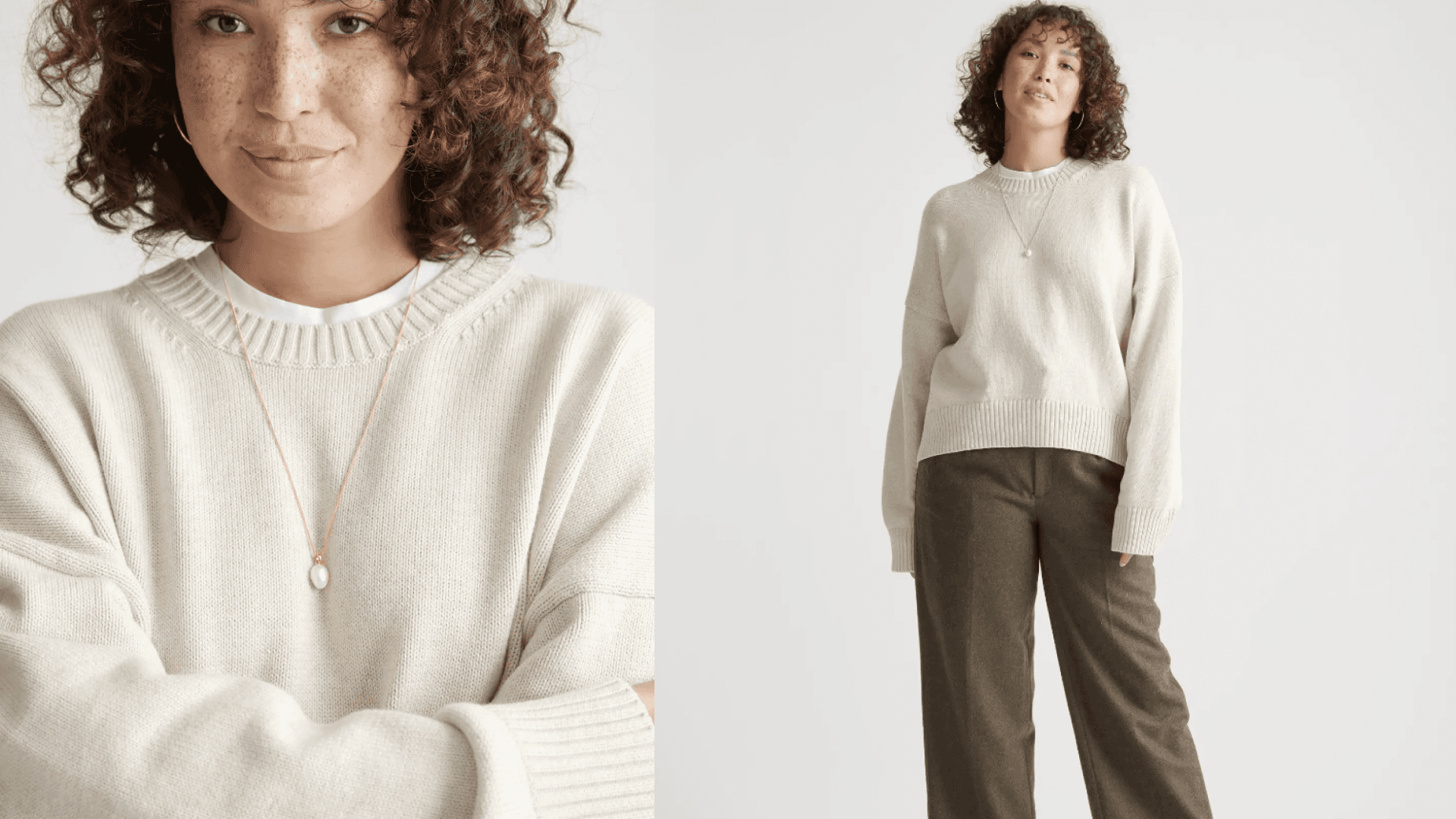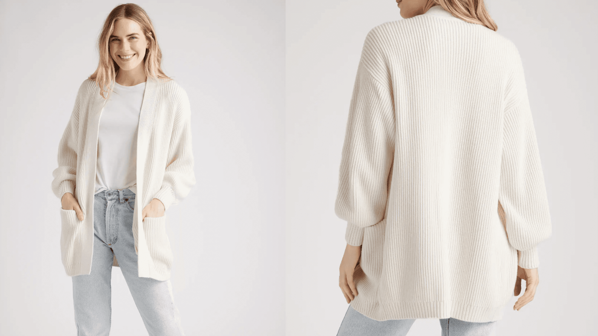 Introducing your next Emotional Support Sweater. This $49 option from Quince is for those who want a no-frills cardigan they can hyperfixate on and not tire of. It’s just the right amount of oversized, so it’ll feel like wearing a blanket at your desk. Plus, its ribbed knit makes it look way more expensive than it actually is. ($49.90, Quince)
