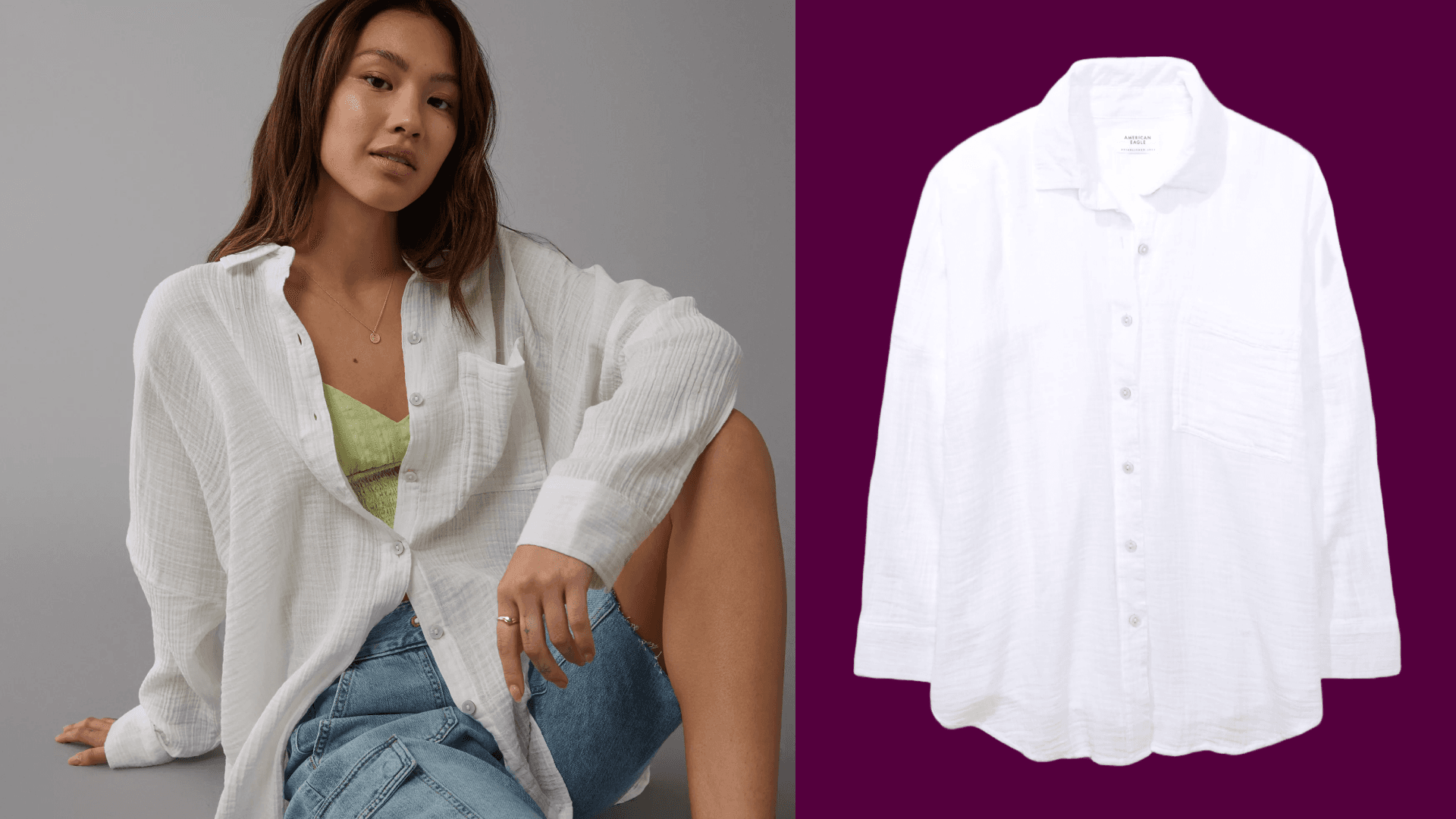 American Eagle markets this as a “Go Big Beach Shirt,” but we’d argue it’s perfect for the office. It’s lightweight enough to fit into most tote bags without weighing them down, and it’ll provide that last-minute layer when you want to quickly throw something on for warmth. ($37.46, American Eagle)